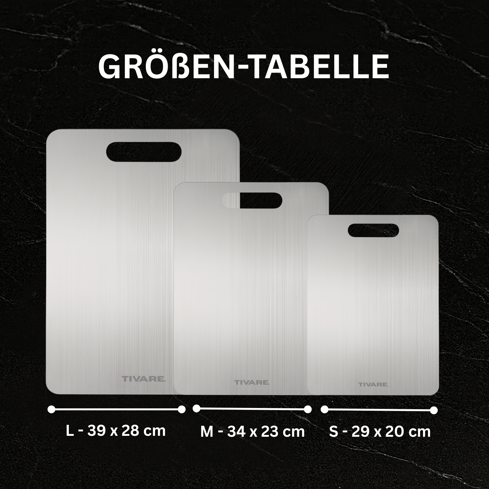 Erhältlich in drei praktischen Größen: 29×20 cm (S), 34×23 cm (M) und 39×28 cm (L) – perfekt für jede Küche.